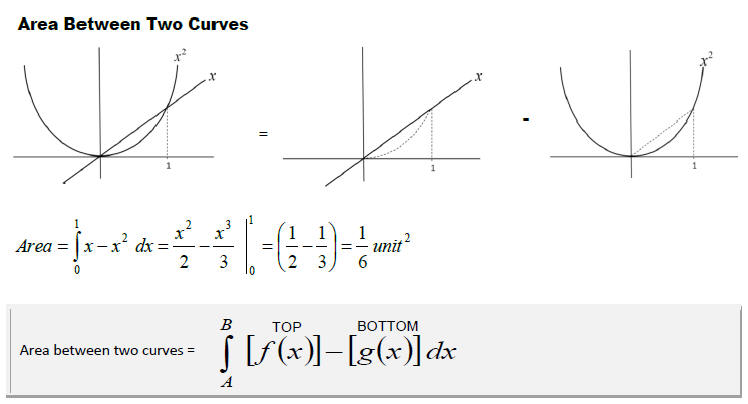 Here is a perfect example finding the area between x^2 and sqrt(x)