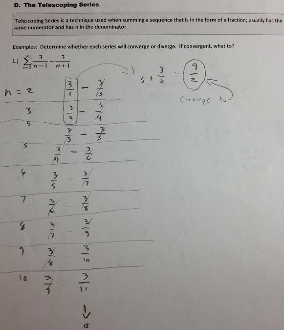 Telescoping Series: A sum in which subsequent terms cancel each other,