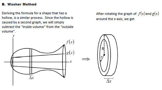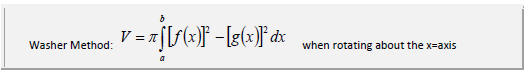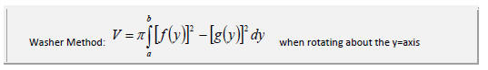 Washer method is similar to the disk method but we have a hollow center. Therefore we rotate the area between the curves.